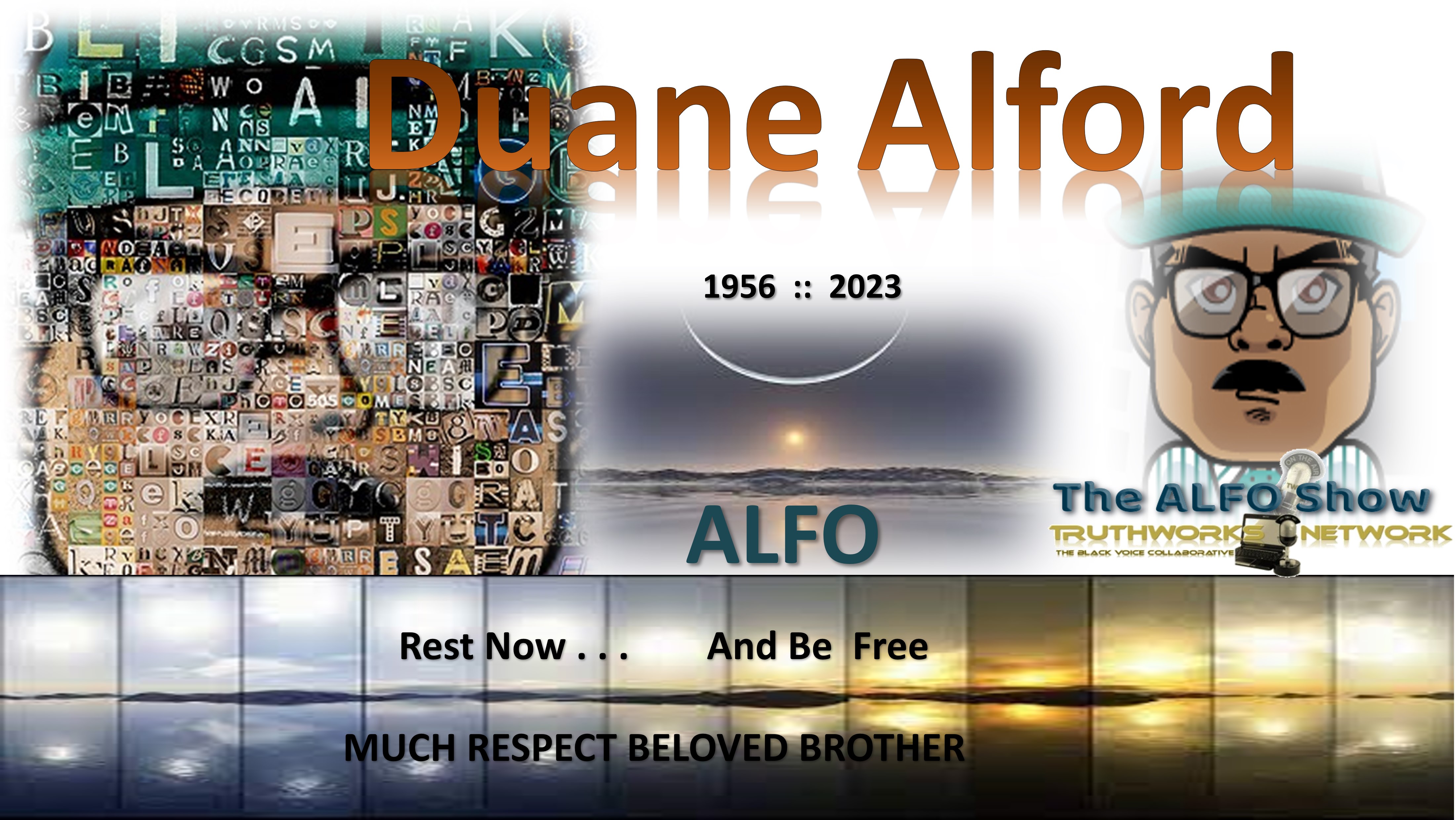 There was no better and more loving Father, man, Brother, and friend. His big heart and sharp mind were his offering to us all. ALFO has laid his mic down. We will remember him always and wish him rest in his transition. Rest and be Freedom, truth warrior and be free.